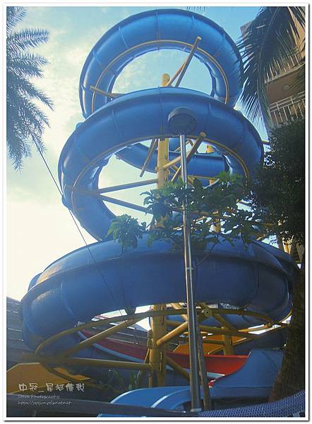 14.中冠有一個祕密武器是別家沒有的,就是這個5層樓高的室外滑水道,可惜當時正在保養,沒有開放
