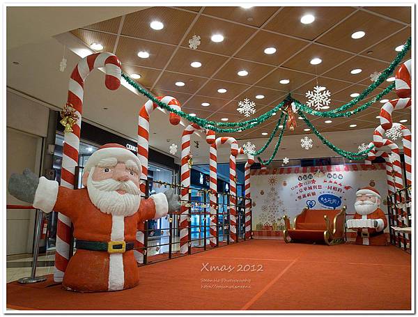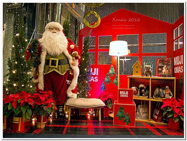 09.門內有一個真人大小的聖誕老公公在迎接你,以紅色為主,配上黃、綠色的造景,顯得浪漫溫馨