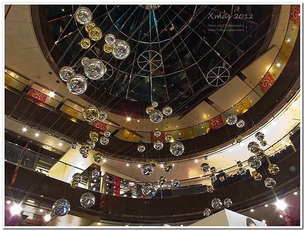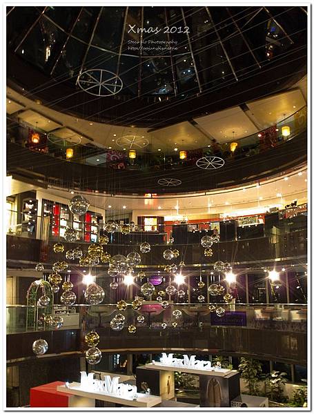 10.中庭屋頂上吊掛著許多金銀球做裝飾,配上燈光及玻璃的反射,像銀河星球般閃耀著耀眼的光芒