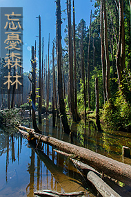 來到忘憂森林一眼望去是筆直黝黑的杉木佇立,或傾倒在沼澤中,